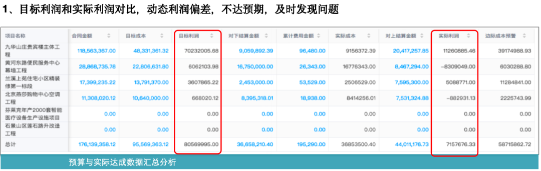 通過紅圈系統(tǒng),在過程中可以實時看到人、材、機等各項成本發(fā)生是否合理, 項目利潤是否達預期,過程中出現(xiàn)風險能夠及時解決和控制,后期也可以對單個項目去做成本分析。