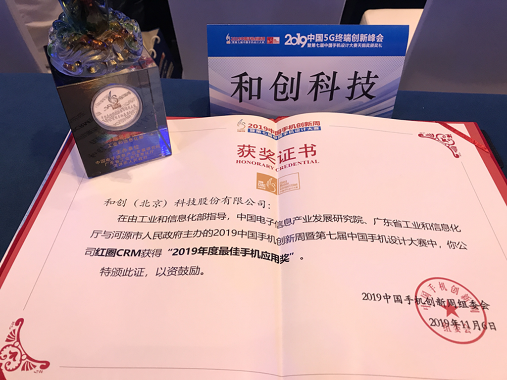 “紅圈CRM”憑借卓越的創(chuàng)新能力、深入垂直行業(yè)的專業(yè)性、人性化的產(chǎn)品設(shè)計能力、成熟的商業(yè)能力和穩(wěn)健的發(fā)展態(tài)勢,從數(shù)百家參選企業(yè)中脫穎而出,獲得了由2019年中國5G終端峰會評出的《2019年度最佳手機應(yīng)用(APP)獎》。