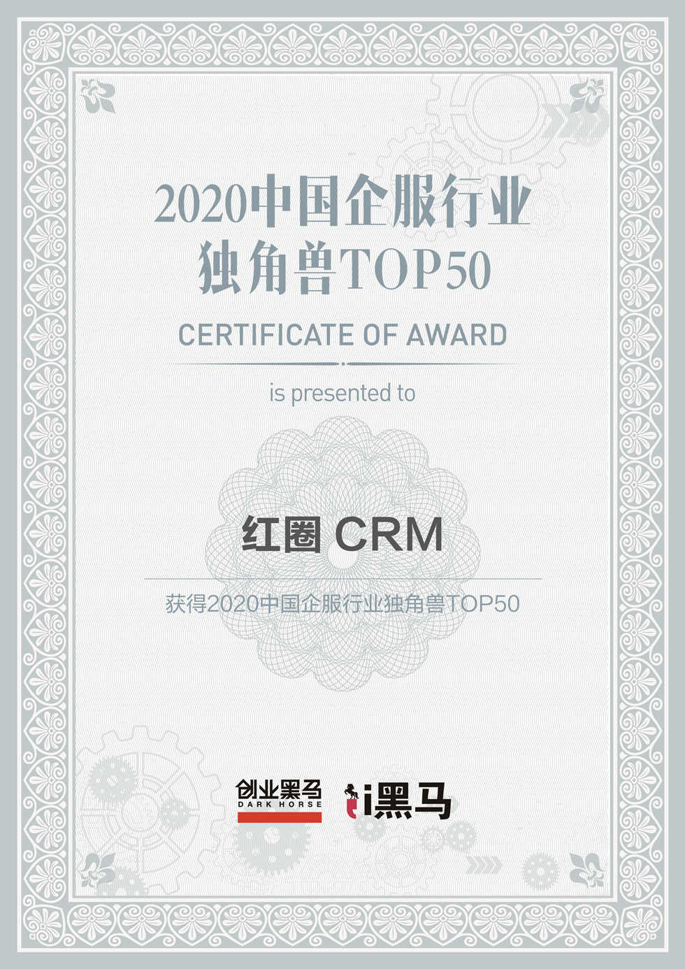 紅圈?CRM?榮登《2020?中國企服行業(yè)獨角獸?TOP50》