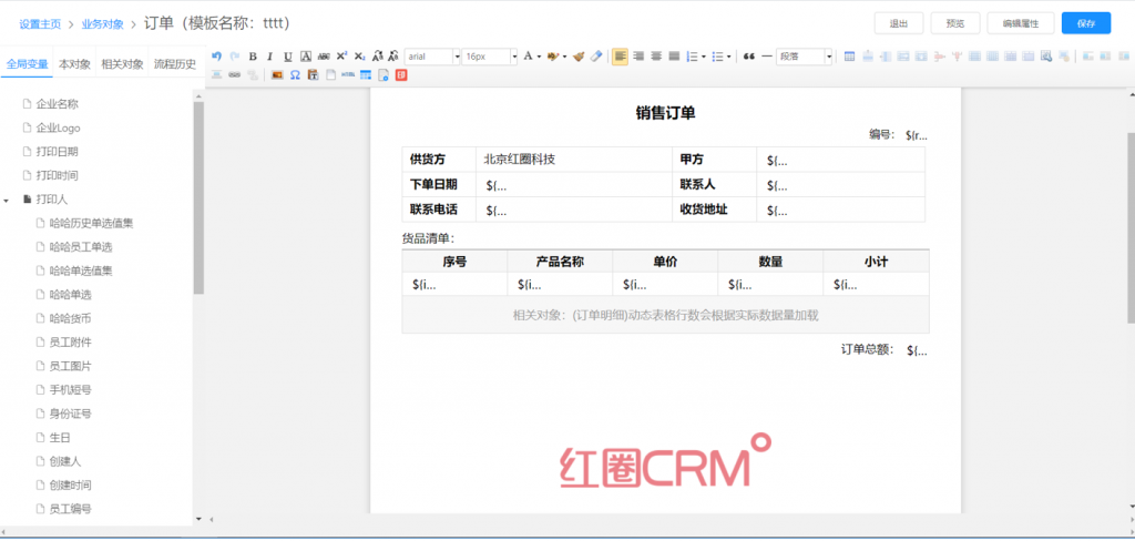 水印設置,支持文字和圖片水印,其中文字水印可以取系統字段作為變量