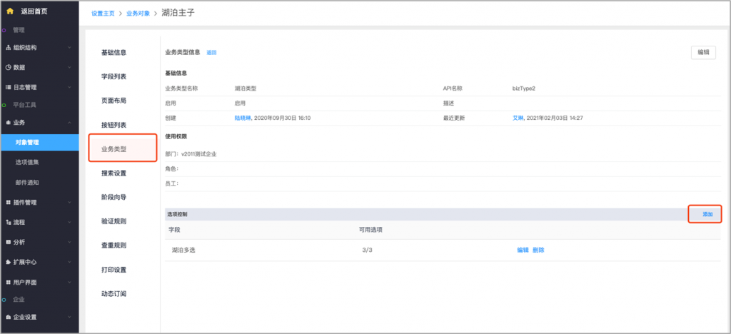 - 主對象業務類型控制子對象:主對象的業務類型可以控制子對象的單選及多選字段