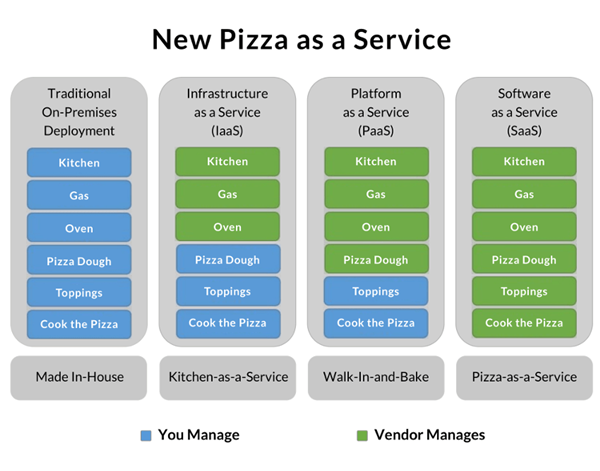 IBM 的軟件架構(gòu)師 Albert Barron 曾經(jīng)使用披薩作為比喻,解釋這個(gè)問題。David Ng 進(jìn)一步引申,讓它變得更準(zhǔn)確易懂。