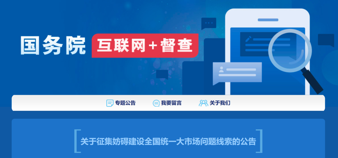 9月25日,國務(wù)院辦公廳發(fā)布《關(guān)于征集妨礙建設(shè)全國統(tǒng)一大市場問題線索的公告》。公告明確,為貫徹落實(shí)《中共中央 國務(wù)院關(guān)于加快建設(shè)全國統(tǒng)一大市場的意見》,推動(dòng)解決妨礙建設(shè)全國統(tǒng)一大市場的突出問題,國務(wù)院“互聯(lián)網(wǎng)+督查”平臺從即日起面向社會征集七個(gè)方面的問題線索和意見建議: