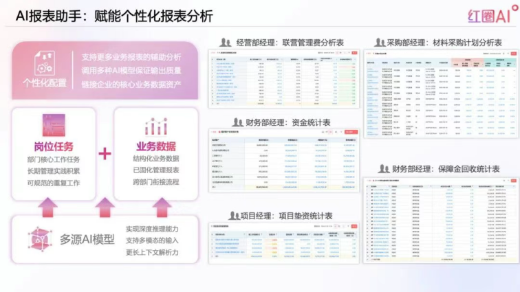 還有AI報表助手,下屬分公司報上來的財務(wù)報表、績效數(shù)據(jù),系統(tǒng)秒級就能解析。比如發(fā)現(xiàn)“某分公司管理費用率比去年高了5%”,AI會直接關(guān)聯(lián)業(yè)務(wù)數(shù)據(jù),告訴你“主要是差旅費用漲了”,甚至能調(diào)出具體的差旅報銷記錄。你不用再逐行核對報表,幾分鐘就能摸清各單位的價值創(chuàng)造能力,資本該往哪投、該砍哪塊成本,心里門兒清。