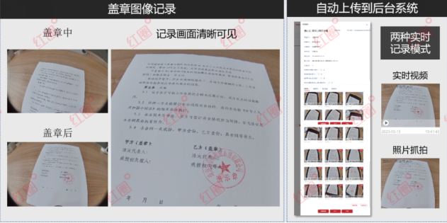 全程監(jiān)控影像留痕:設(shè)備內(nèi)置高清攝像頭,在每次蓋印動(dòng)作觸發(fā)時(shí),強(qiáng)制對(duì)文件內(nèi)容進(jìn)行拍照并錄制動(dòng)態(tài)視頻,完整記錄用印人、用印文件、周邊環(huán)境等信息,所有影像資料實(shí)時(shí)上傳至云端安全存儲(chǔ)。