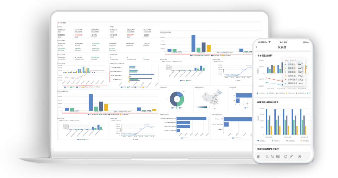 ● 決策支持:系統的多維度可視化經營看板,讓公司的經營情況和項目的經營情況一目了然,同時助力管理層快速定位風險,及時調整策略。